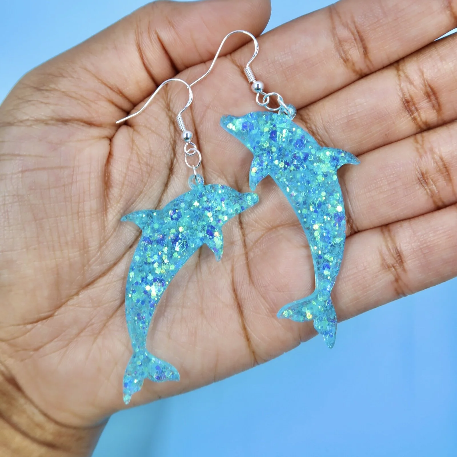 Each pair in this lineup is a playful, sparkly interpretation of sea life. These are not recreations of the ocean but creatures and treasures reimagined through my eyes, brought to life as bright resin keepsakes.